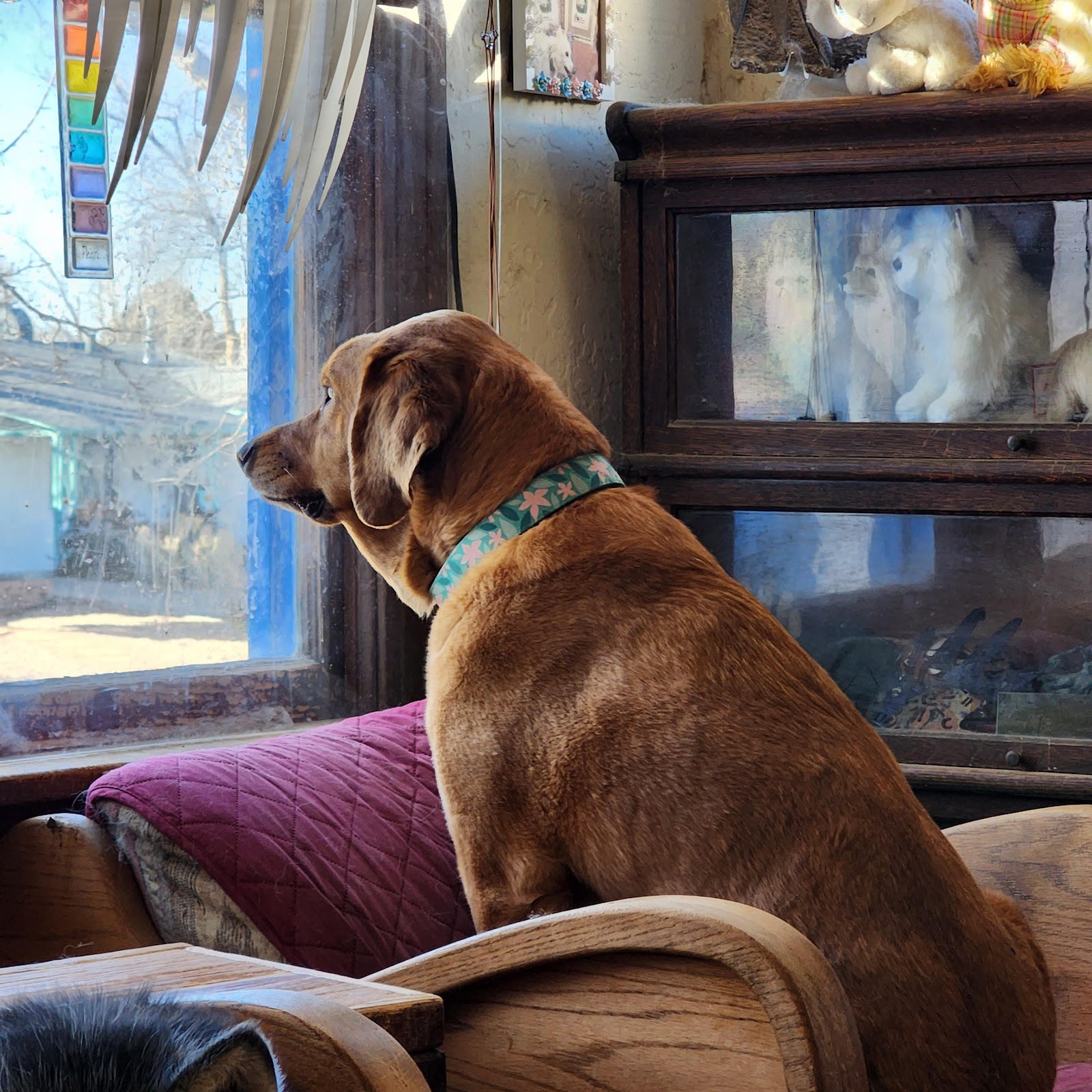 We have a new watcher in the watching chair. It's not that we need a new watcher, but Hazel has decided that she'll help to defend the castle along with Roman, Lilly and Diva. We've never been more safe here on Hermosa Drive.
