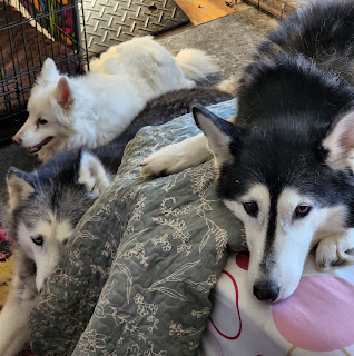 "The Birthday dinner has arrived," Roman announced. "What special feast do you have for me?" Steve asked as he carried the order to the kitchen to be plated. The White Dog Army began calling out the Cajun seafood goodies being unwrapped. "It smells wonderful," Steve told them.
